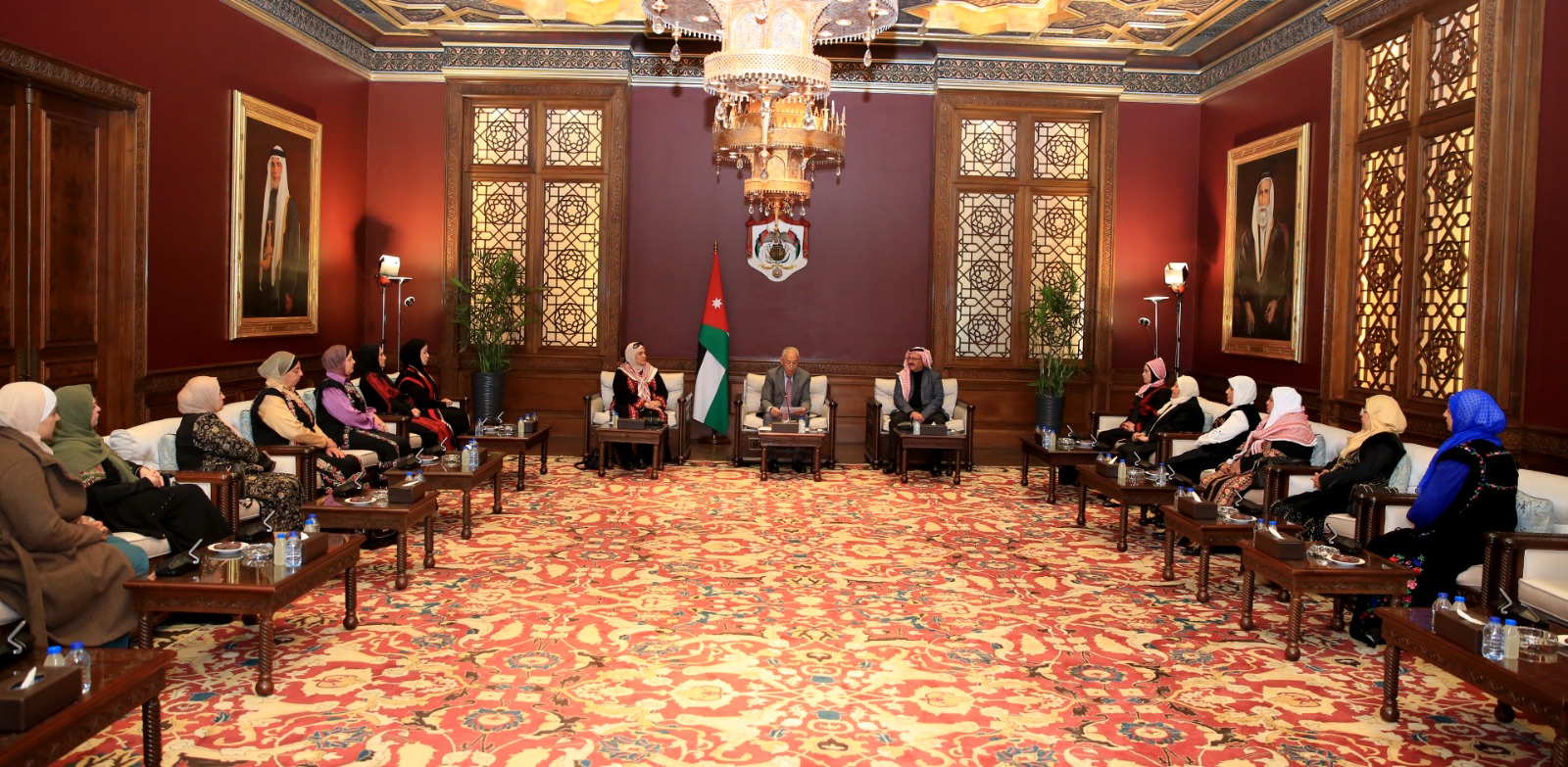 جاء ذلك خلال لقائه في الديوان الملكي الهاشمي، اليوم الخميس، بحضور مستشار جلالة الملك لشؤون العشائر كنيعان البلوي، وفدًا نسائيًا من سيدات الكرك القاطنات في محافظة الزرقاء، ووفدًا يمثل فريق “ملهمون للعمل الشبابي والتطوعي”، في لقاءين منفصلين.