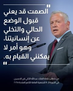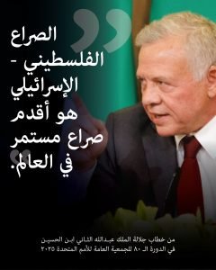 الملك من الأمم المتحدة: قيام الدولة الفلسطينية ليس مكافأة للفلسطينيين بل هو حق لا جدال فيه