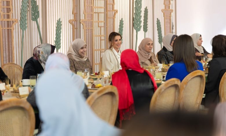 Jordan Daily – Her Majesty Queen Rania Al Abdullah hosted a group of women active in social, cultural and educational work in Al Mafraq, over lunch at the governorate’s historic rural area of Umm Al-Jimal on Monday.
