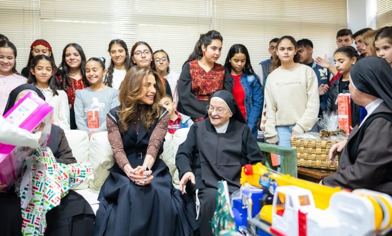 Jordan Daily – Her Majesty Queen Rania Al Abdullah marked the holiday season on Wednesday with a visit to the Mar Mansour Charitable Society in Amman, joining a group of children as they engaged in a variety of Christmas activities.